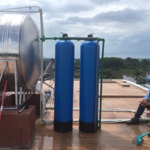 Quy trình công nghệ: Nước đầu ngồn được bơm trực tiếp qua thiết bị lọc tại đây dưới tác dụng của vật liệu lọc đa tầng các chất bẩn, rong rêu, phèn được giử lại trong thiết bị lọc và được thải ra ngoài bằng van thải theo định ký, còn nước sạch được cấp vào bồn chứa nước sạch, tại bồn chứa nước sạch sẽ được gắn phao điện tự động điều khiển tắt mở bơm nhằm mục đích tắt bơm khi bồn đã chứa đầy nước và mở bơm khi nước bị hao hụt một khoảng nhất định do mình cài đặt, với tác dụng của phao nước tự động thì bồn chứa nước sạch luôn được dự trữ đầy nước.